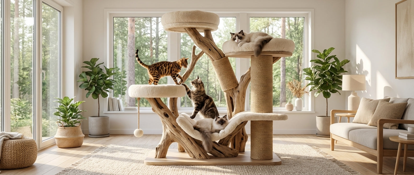 Arbre à Chat en Bois – Design Naturel et Structure Robuste